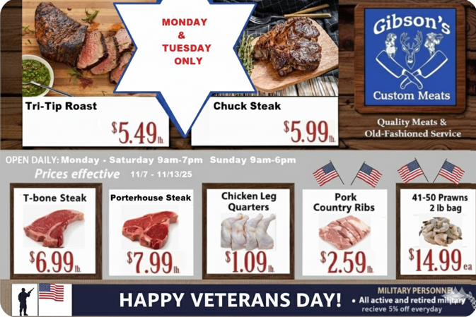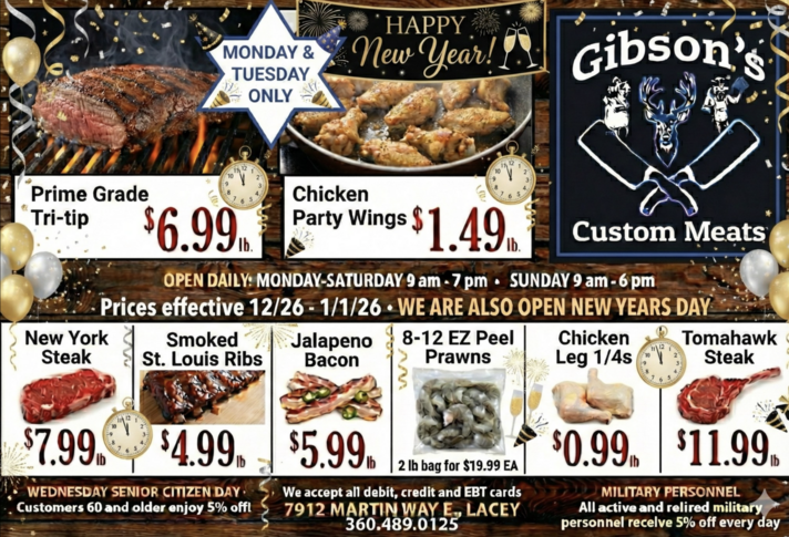 Owners Chuck Gibson, Kimberly Iverson, and family thank you for your support. Your locally-owned family ran custom meat shop. Thanks for choosing us for the Best of the South Sound!